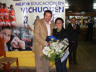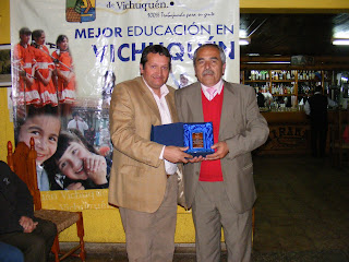 Dos Profesores fueron reconocidos por sus más de 30 años de servicio en la labor docente; la profesora Beatriz Pastén Hernández y el profesor Osvaldo Arcos Bascuñán, ambos del Liceo Entre Aguas de Llico. Reciben de manos del Sr Alcalde un recuerdo de este momento.